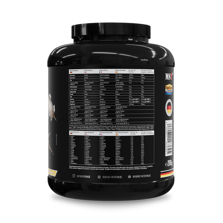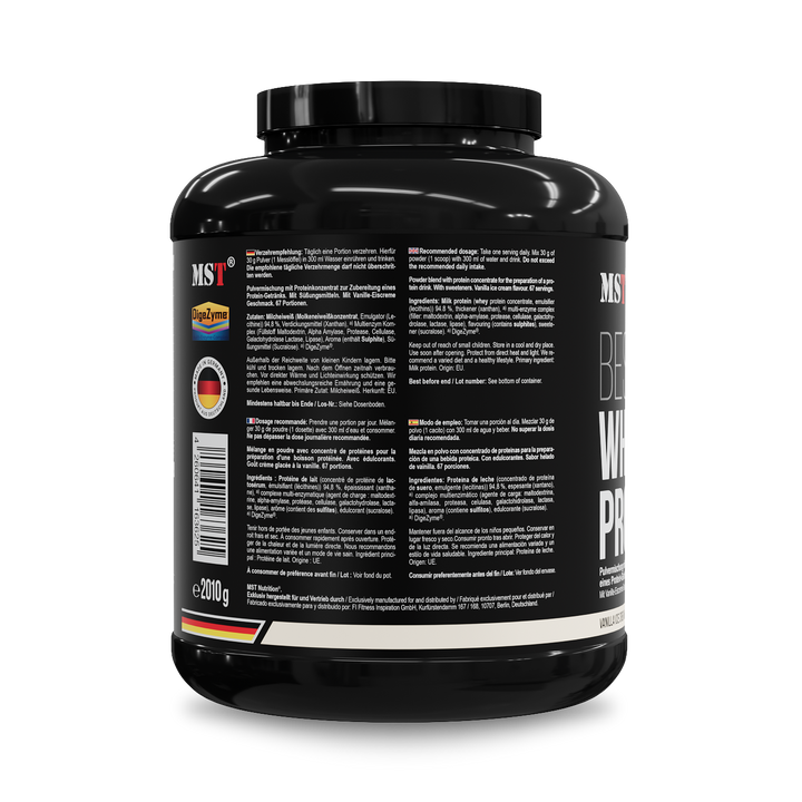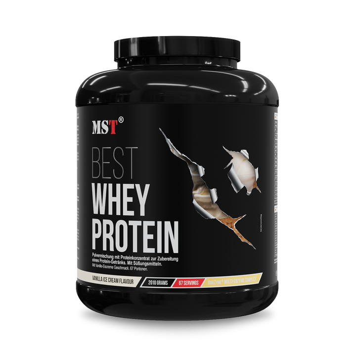 Scoprite l'esperienza proteica definitiva con MST® BEST Whey Protein Vanilla Ice Cream 2010 g, integrato con DigeZyme® – una combinazione rinfrescante che fornisce al vostro corpo proteine di alta qualità ed enzimi digestivi.