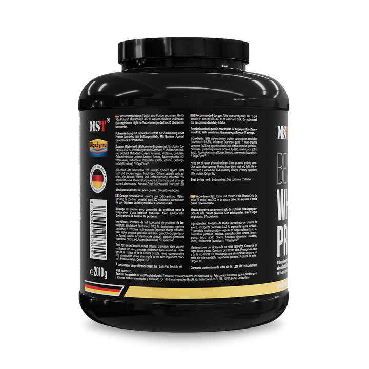 Odkryj najlepsze doznania białkowe z MST® BEST Whey Protein Banana Yougurt 2010 g, uzupełnionym o DigeZyme® - orzeźwiającą kombinację, która dostarcza Twojemu organizmowi wysokiej jakości białka i enzymów trawiennych.